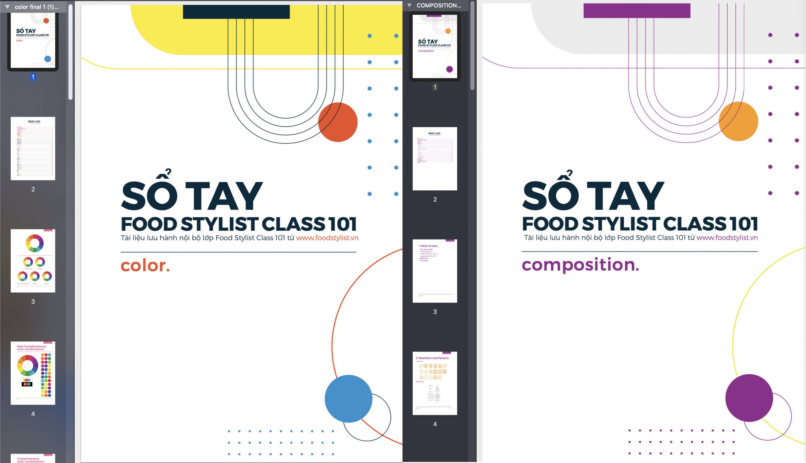 – Hướng dẫn sử dụng màu, lựa chọn Prop/ Background khi lên Concept bằng 2 cuốn sổ tay từ lớp Food Stylist Class 101